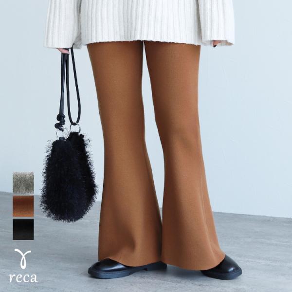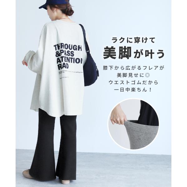 ジャガードニットフレアパンツ p280914 レディース 2025年秋冬新作 ボトムス パンツ ウエストゴム ストレッチ カジュアル シンプル 秋 冬 ネコポス発送10