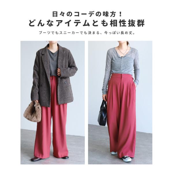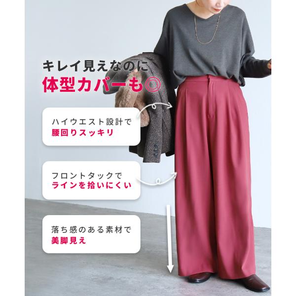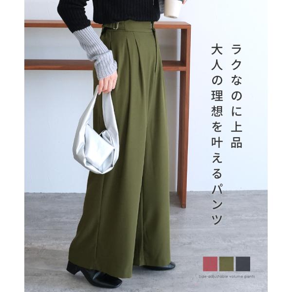 サイド調整ボリュームパンツ y2783 レディース ボトムス パンツ カジュアル シンプル きれいめ ワイド 秋 ネコポス発送10