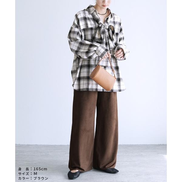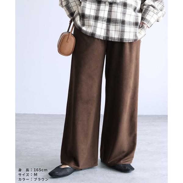 スエード風イージーパンツ y2830 レディース 2025年秋新作 ボトムス イージーパンツ ストレートパンツ ワイド ウエストリボン ウエストゴム ネコポス発送10