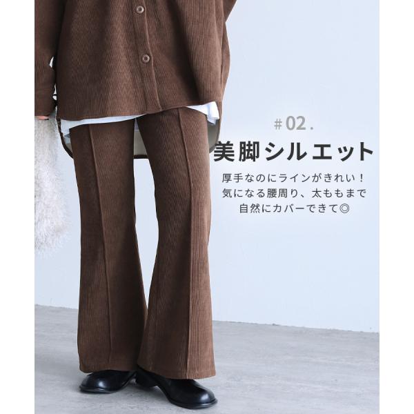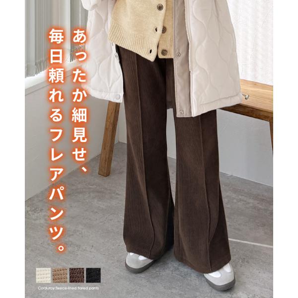 コーデュロイ裏フリースフレアパンツ y2854 レディース 2025年秋冬新作 セットアップ対応 ボトムス パンツ 裏起毛 ウエストゴム 秋冬 女性 ネコポス発送10