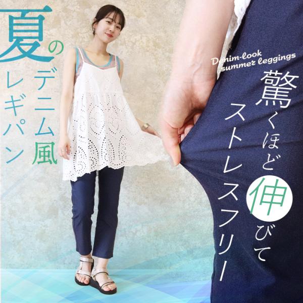 レギンスパンツ レディース デニム 接触冷感 夏用 レギパン ストレッチパンツ ひんやり 涼しい 伸びる スキニー アンクル丈 低身長 ズボン ボトムス yg *y3-1t