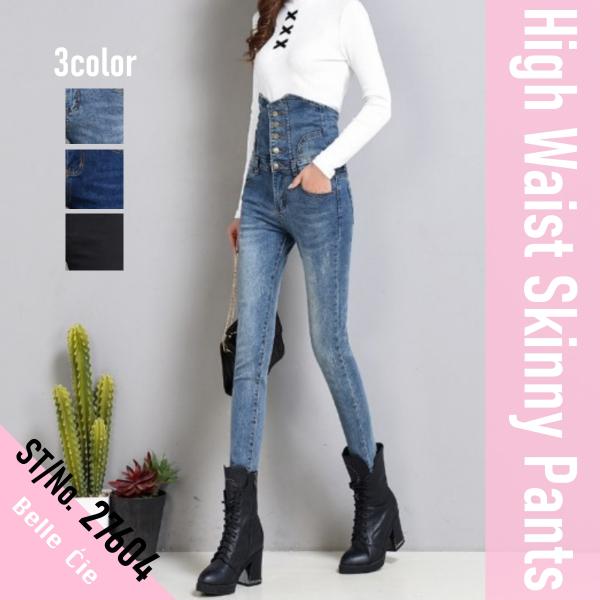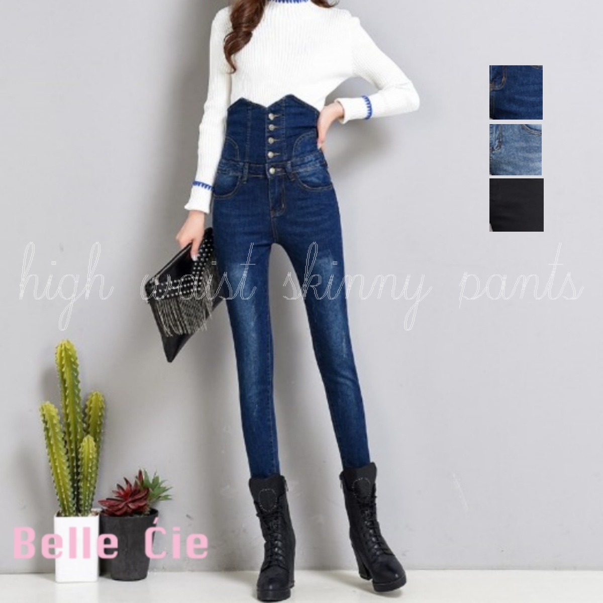 ハイウエスト スキニーパンツ レディース ジーンズ タイト デニム ストレッチ 黒 パンツ ブルー Gパン 大きいサイズ