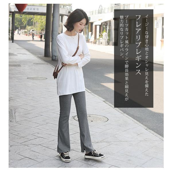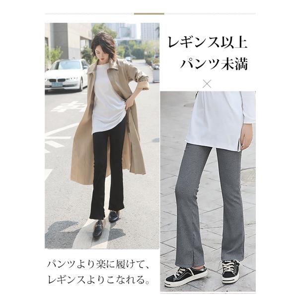 リブレギンス スリット レギンスパンツ レディース セール ボトムス スキニー フレアレギンス ベルボトム 裾広 メロウ 伸縮性 代引不可