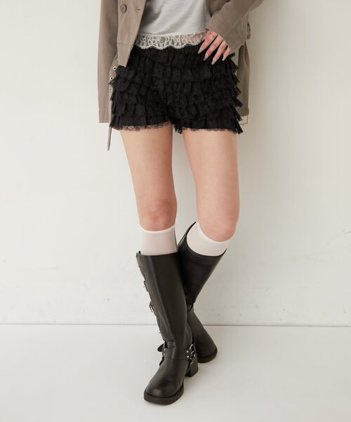パンツ レースショートパンツ(無地/ドット/チェック/レオパード) レディース