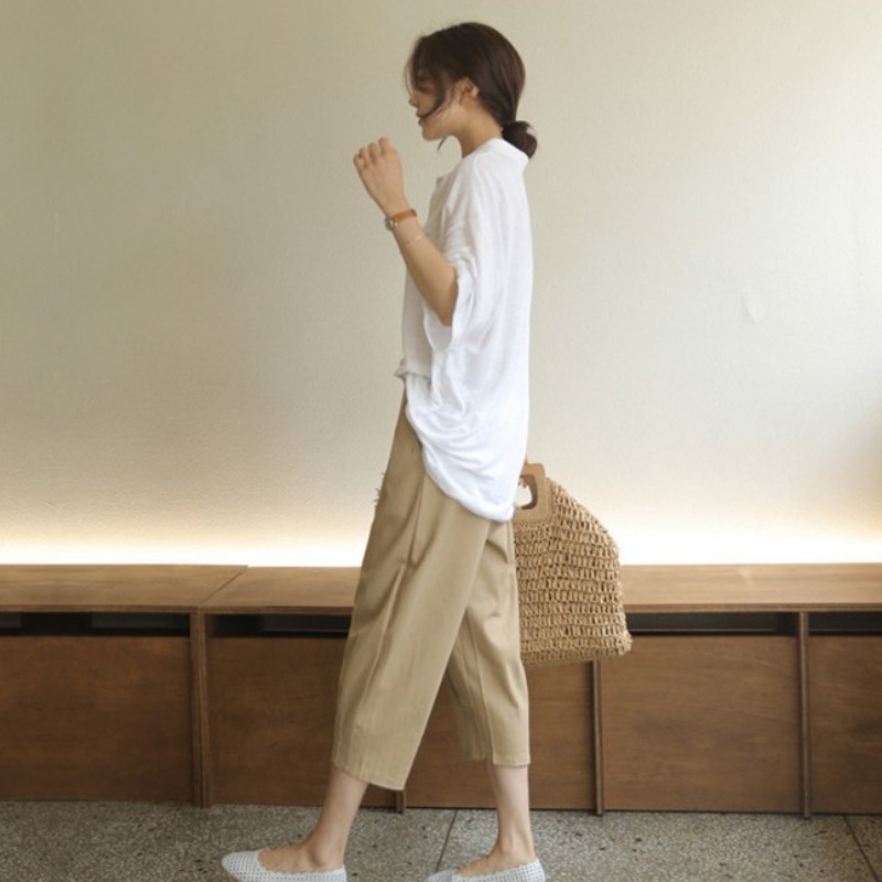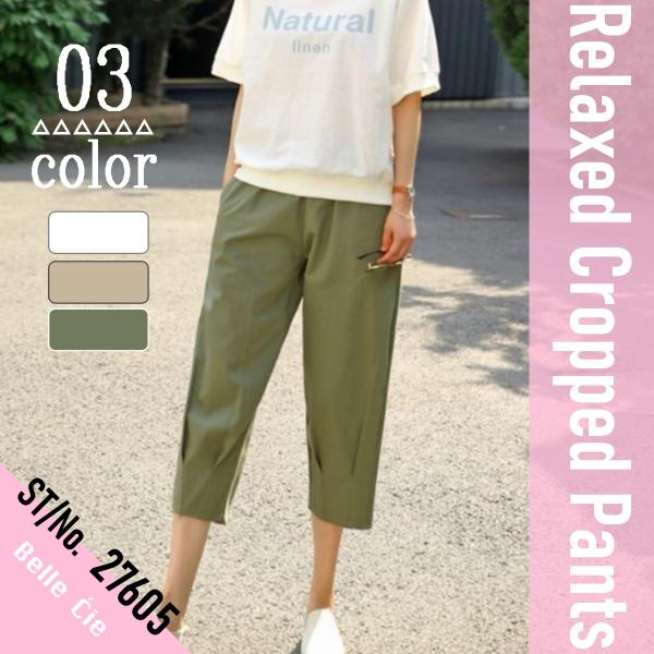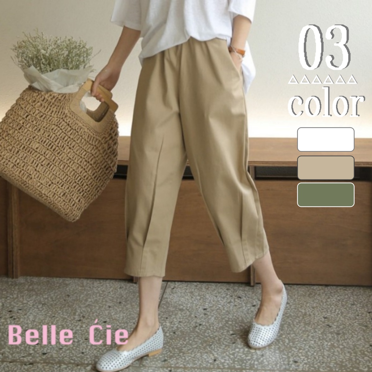 リラックス カプリパンツ サブリナ クロップド レディース ウエストゴム チノパン ズボン 20代 30代 40代 50代
