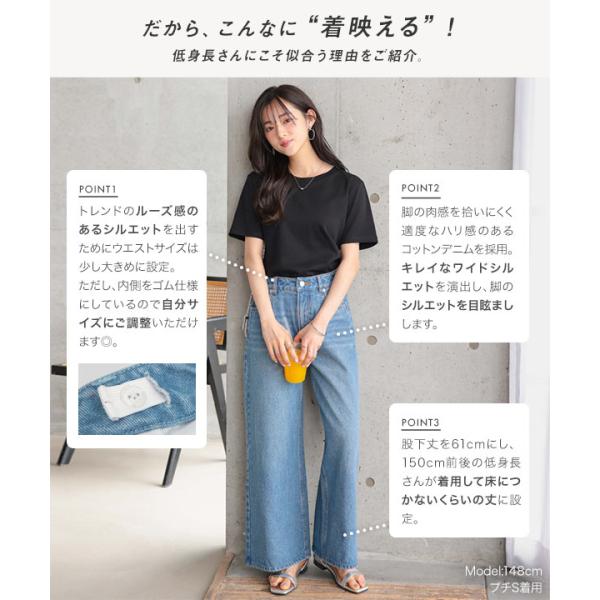 ボトム Petitle プチレ ウエスト調整ゴム付きワイドデニムパンツ レディース 20代 30代 40代 低身長 M4239