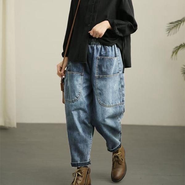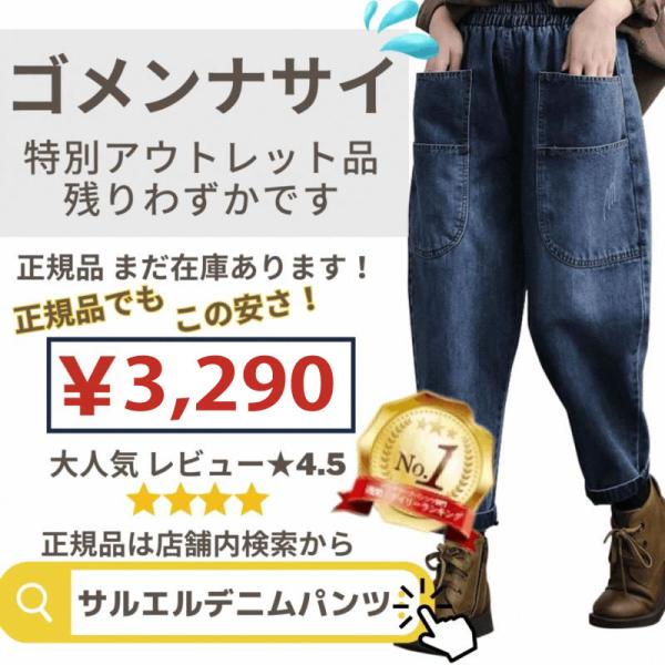 訳あり サルエル デニム パンツ 細見え 体型カバー 腰周り ゆったり スラウチ 細見え 体型カバー バルーン サーカス カーブ 数量限定 返品交換不可 即納