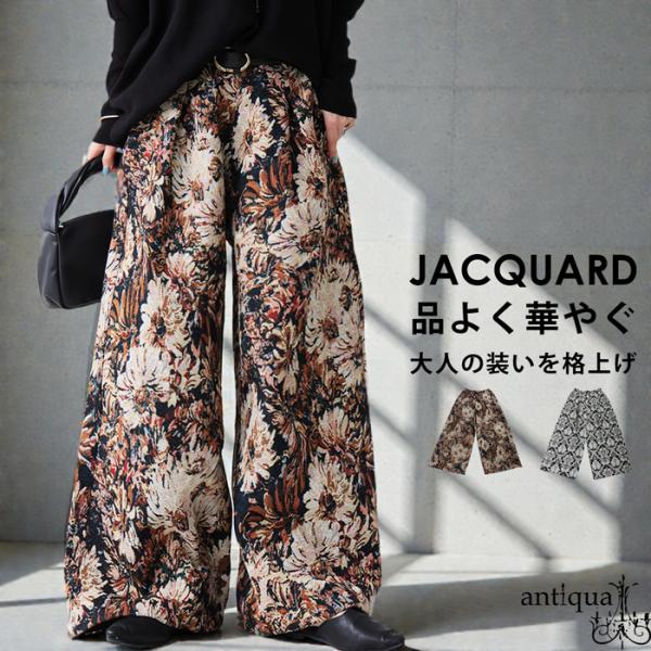 大柄 ジャガード ワイドパンツ レディース ロング 送料無料・再入荷 メール便不可 爆買