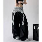 ワイドパンツ ゆったり レース ロゴ 刺繍 甘辛MIX モード 柄 レディース 韓国ファッション ストリート Y2K ローウエスト ルーズ 個性派
