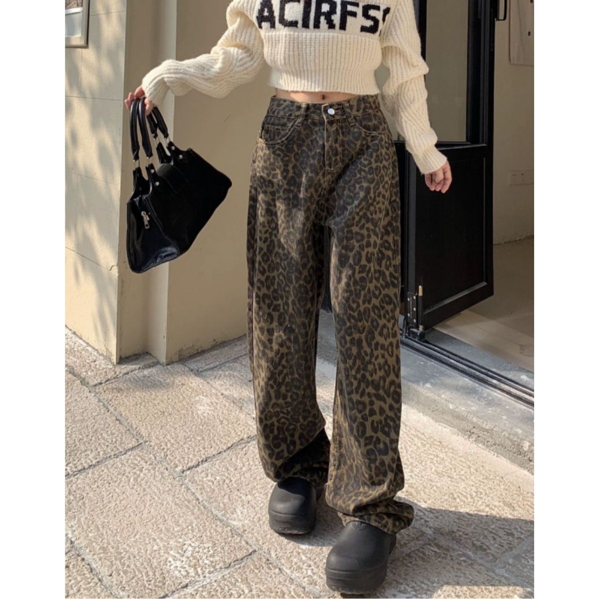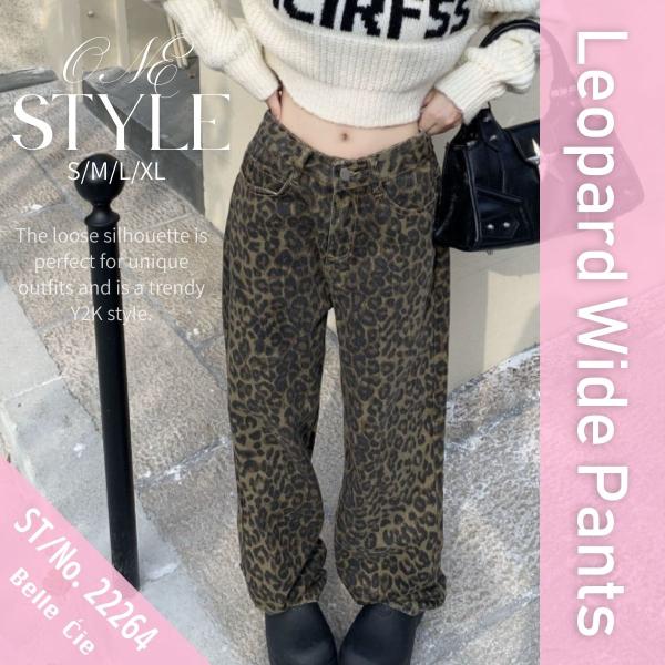 ワイドパンツ レオパード 豹 ヒョウ 柄パン ストレート Y2K レディース 韓国ファッション 総柄 アニマル柄 ストリート 個性派 韓国ボトム 柄