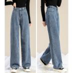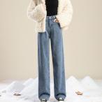 裏シャギー デニムパンツ ジーパン レディース 裏起毛 ジーンズ ワイドパンツ ゆったり ワイド ストレート バギー ハイウエスト パンツ 裏ボア