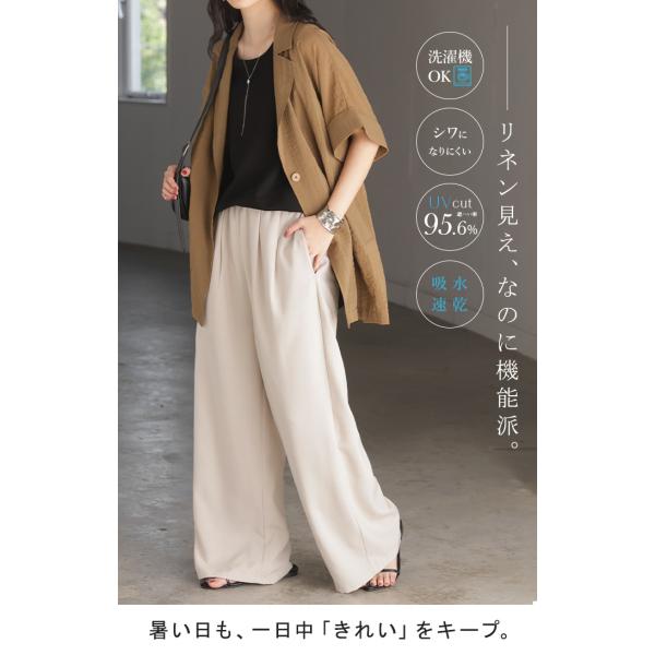 パンツ ワイド イージーケア 30分で乾く リネン ライク レディース ワイドパンツ ロング シワになりにくい UVカット 薄手 吸水速乾 ボトムス ボトム ストレート