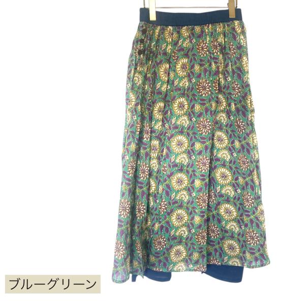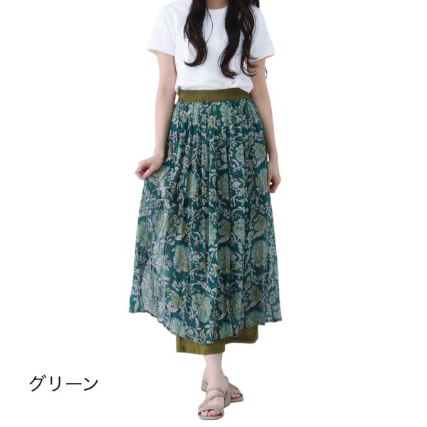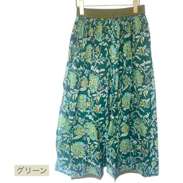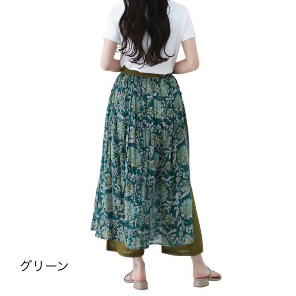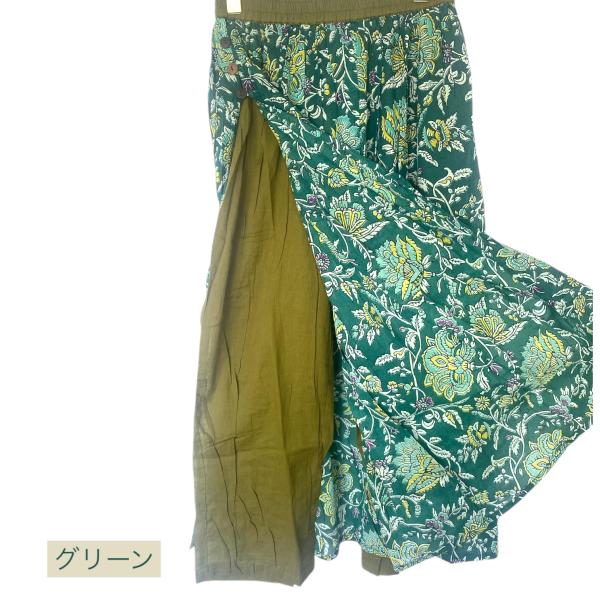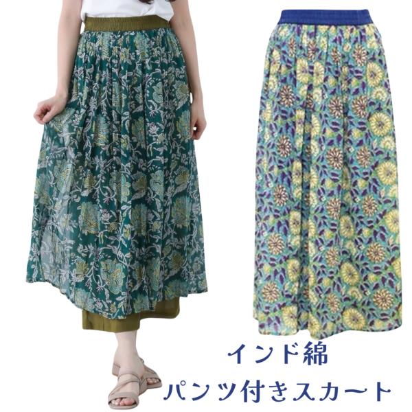 パンツスカート プリント マキシ スカート 付き パンツ 綿ローン インド綿