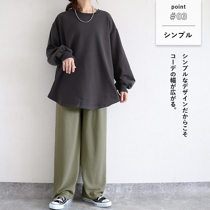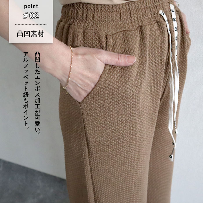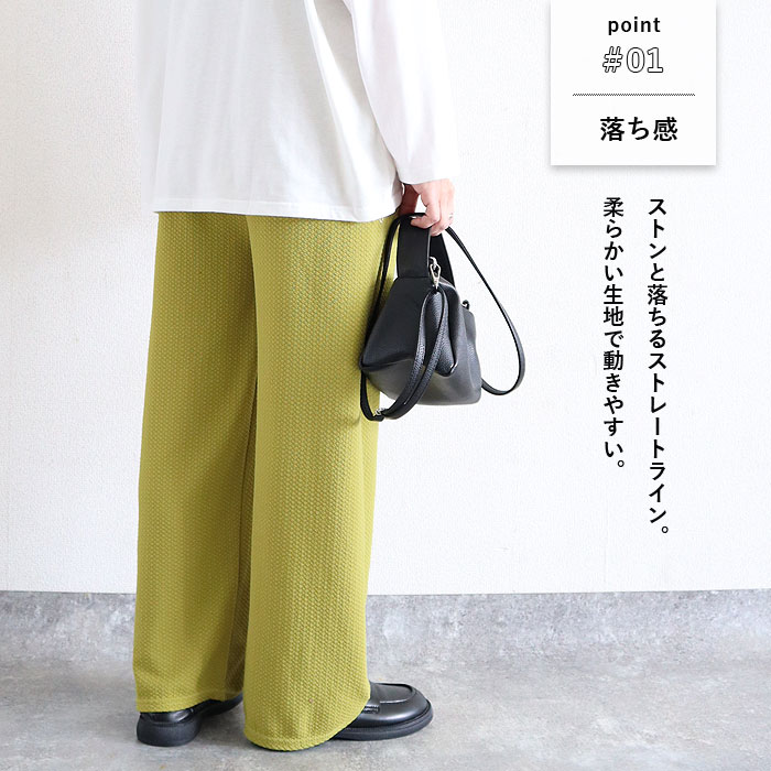 パンツ レディース ロング エンボス 加工 ワイド 春 夏 秋 黒 おしゃれ 40代 50代 ウエストゴム 無地 ズボン ボトムス [郵3]^b390^