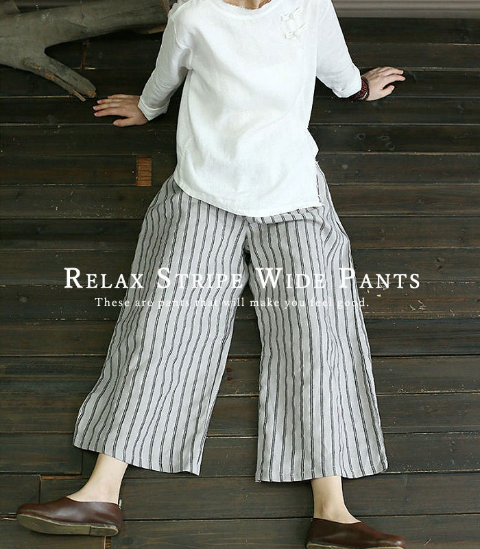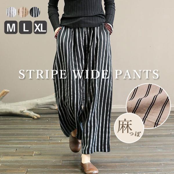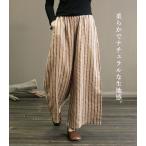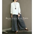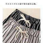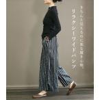 ワイドパンツ レディース 春 夏 ウエストゴム 涼しい ロング ボトムス ストライプ レディース 30代 40代 50代 [郵3]^b460^