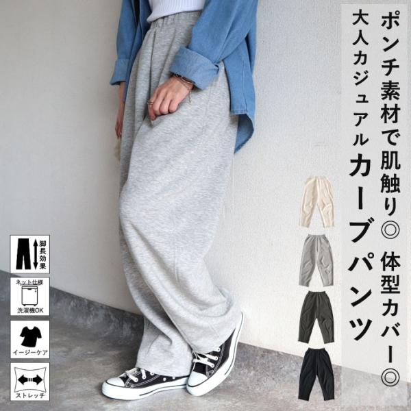 3392円 クーポンで! パンツ カーブパンツ レディース スウェット 春 夏 秋 黒 ポンチ素材 ウエストゴム ゆったり おしゃれ ボトムス ストレッチ [郵3]^b518^