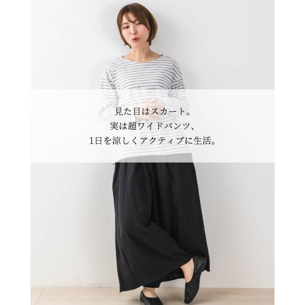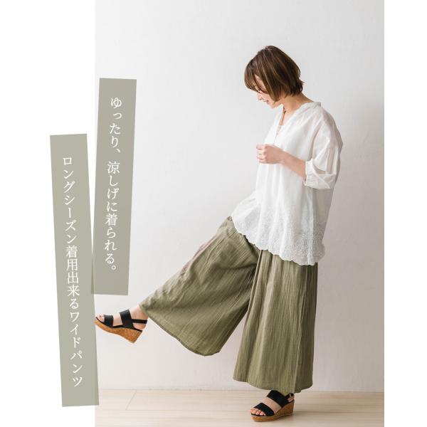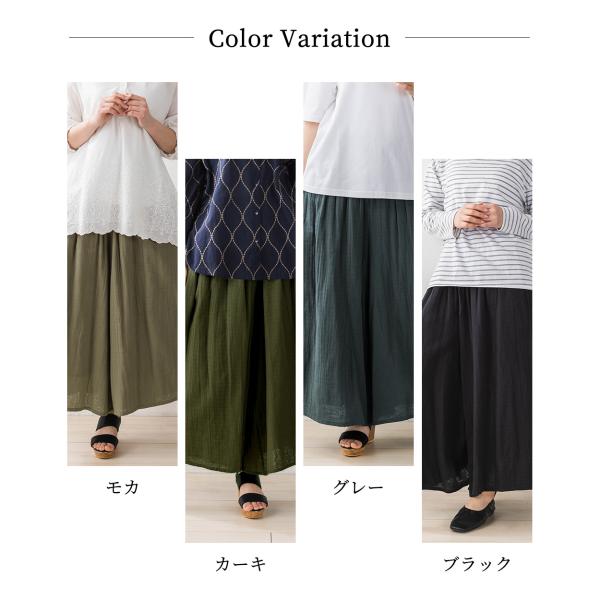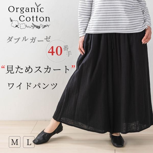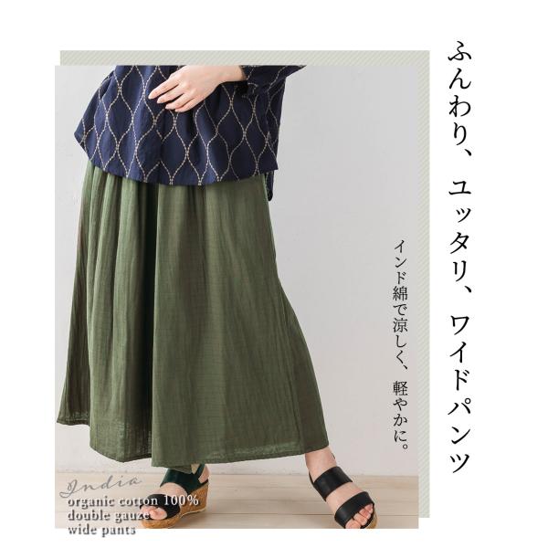 Wガーゼ オーガニックコットン インド綿 ワイドパンツルック レディース 40代 50代 きれいめ 春 夏 秋 コットン 綿 体型カバー