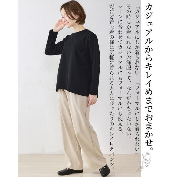強撚コットン ワイドパンツ 日本製 パンツルック きれいめ 上品 レディース ウエストゴム 美脚 ストレッチパンツ ロングパンツ 綿100%