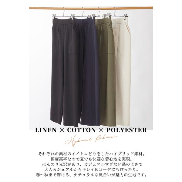 ストレッチパンツ レディース ワイドパンツルック ベイカーパンツ リネンパンツ 麻 大きいサイズ 日本製 接触冷感 夏 5130776 ご試着対象