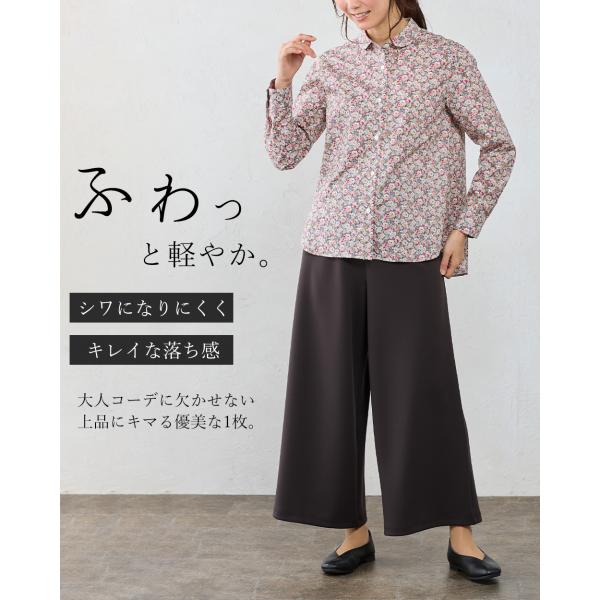 日本製 皺知らず ワイドパンツルック レディース 大きいサイズ M L LL 3L S きれいめ 春 夏 秋 冬 ウエストゴム セットアップ イージーケア