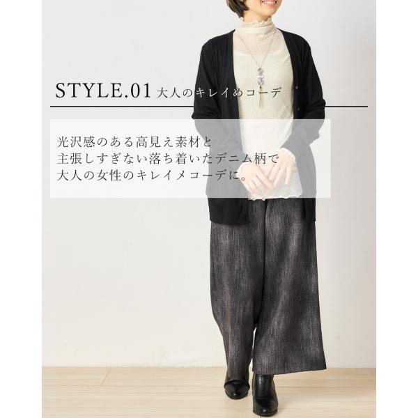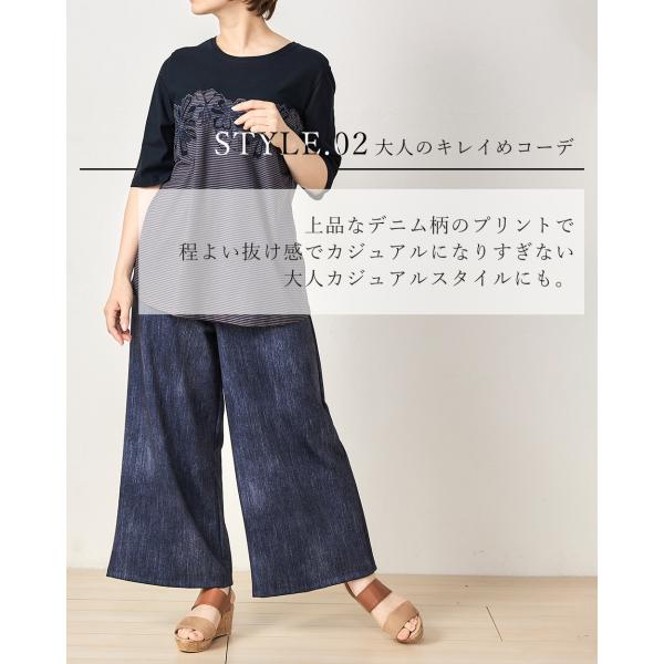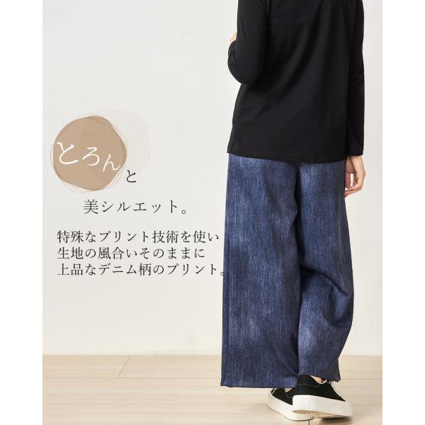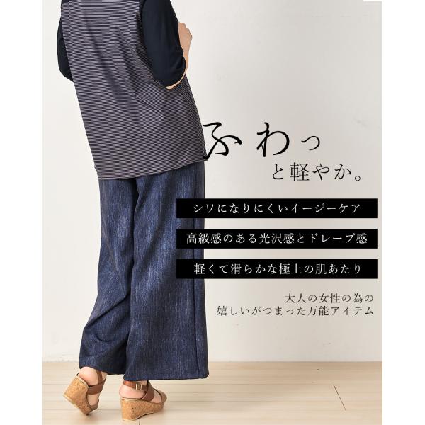 ワイドパンツルック 50代 デニムワイドパンツ レディース ゴム 美脚 ワイドパンツ ストレッチパンツ
