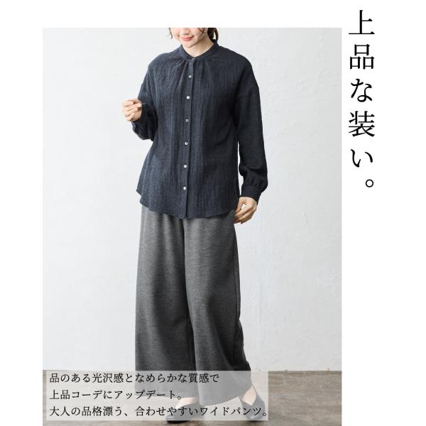 メリノウール 日本製 尾州織り あったかパンツ ワイドパンツ 秋 冬 レディース ワイドパンツルック ウール パンツ 裏起毛 ご試着対象
