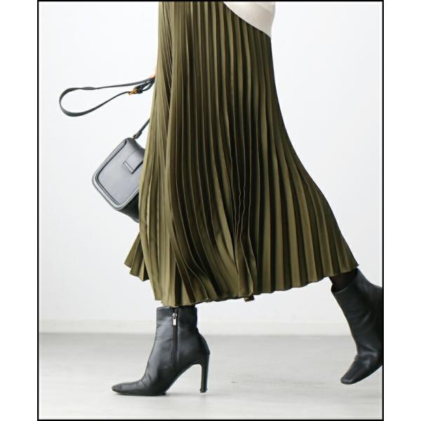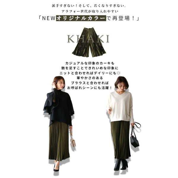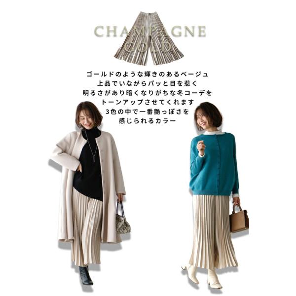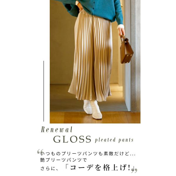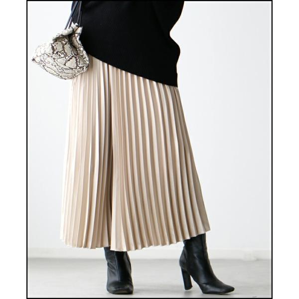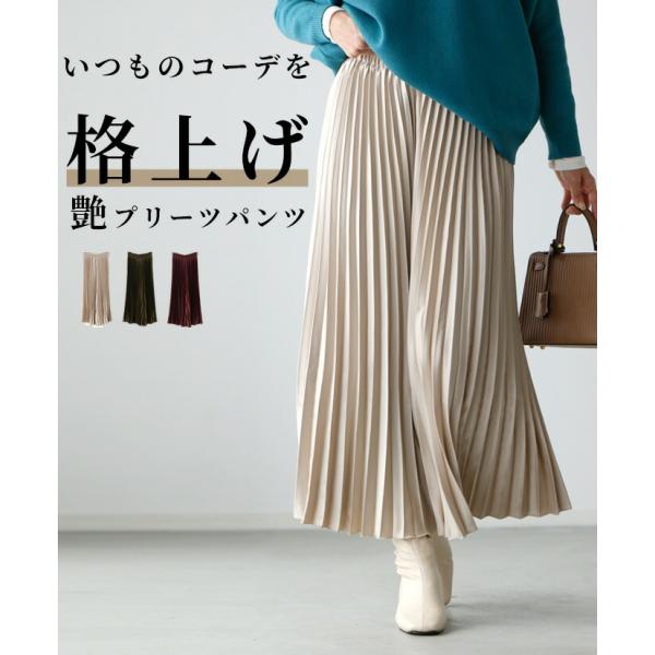 ワイドパンツ パンツ プリーツパンツ スカンツ プリーツ 艶 つや ツヤ 光沢 微光沢 スカンツ ウエストゴム レディース ファッション フリーサイズ
