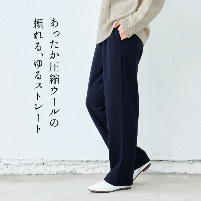 ストレートパンツ レディース ストレッチ 圧縮ウール100% ストレートパンツ 日本製 暖かい 防寒