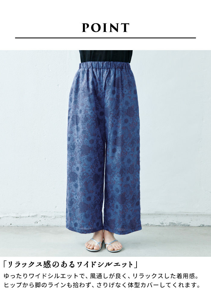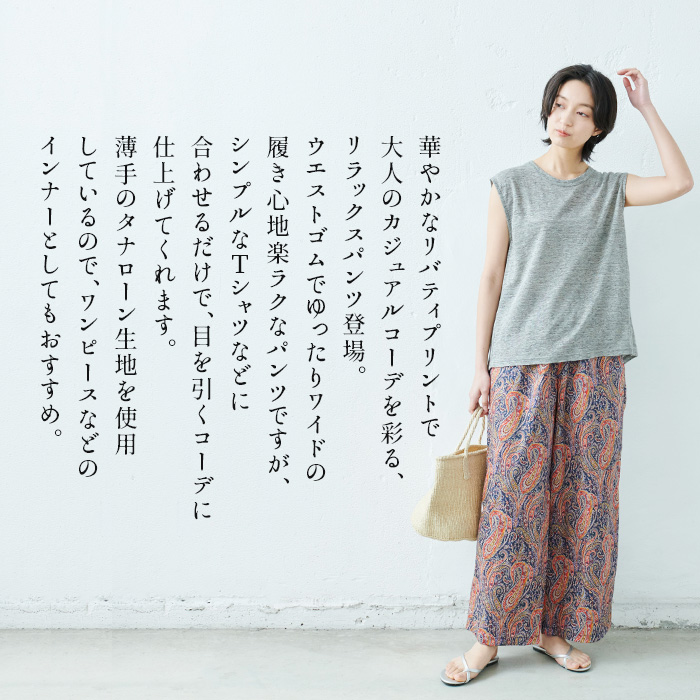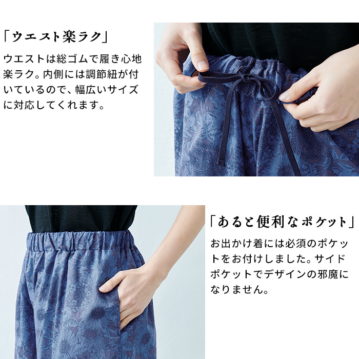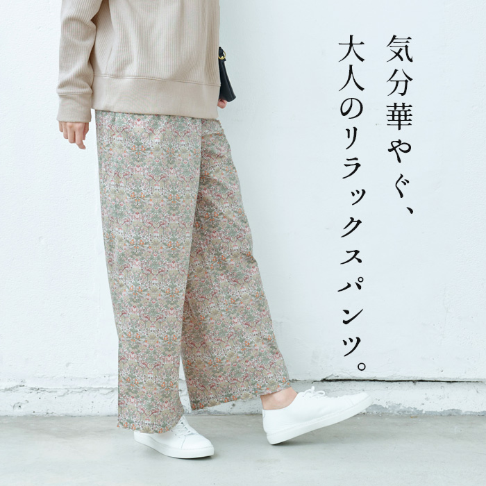 ワイドパンツ レディース 50代 イージーパンツ ゆったり リバティプリント ワイドパンツ 日本製