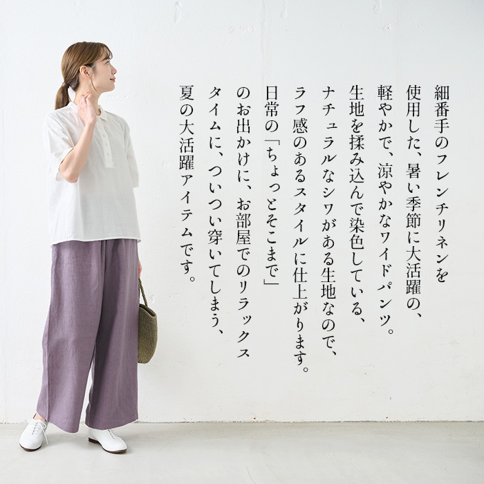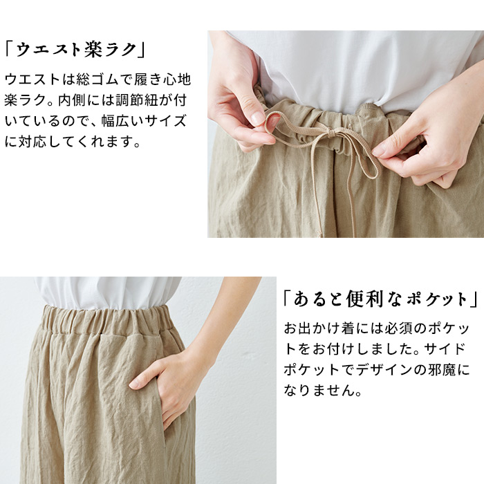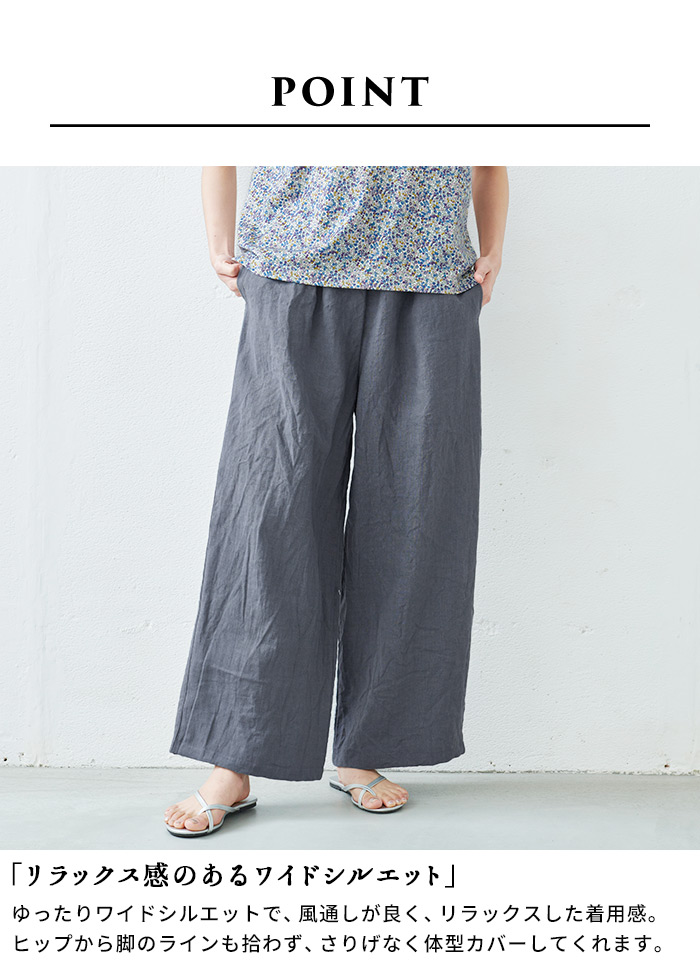 リネンパンツ レディース イージーパンツ 麻 50代 40代 40番手 フレンチリネン100% ワイドパンツ 日本製 メンズ ユニセックス