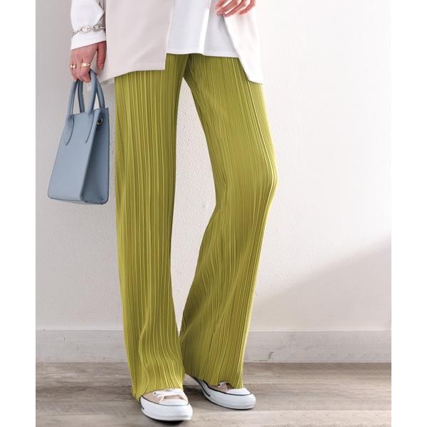 パンツ 「低身長・高身長対応」自分好みの丈感に!セルフカットフレアプリーツカラーイージーパンツ レディース
