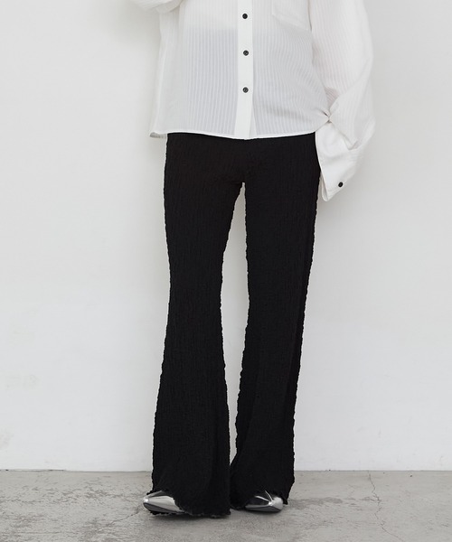 パンツ 「forksy.」「エブリデイシリーズ」シャーリング 裾メロー フレアパンツ レディース