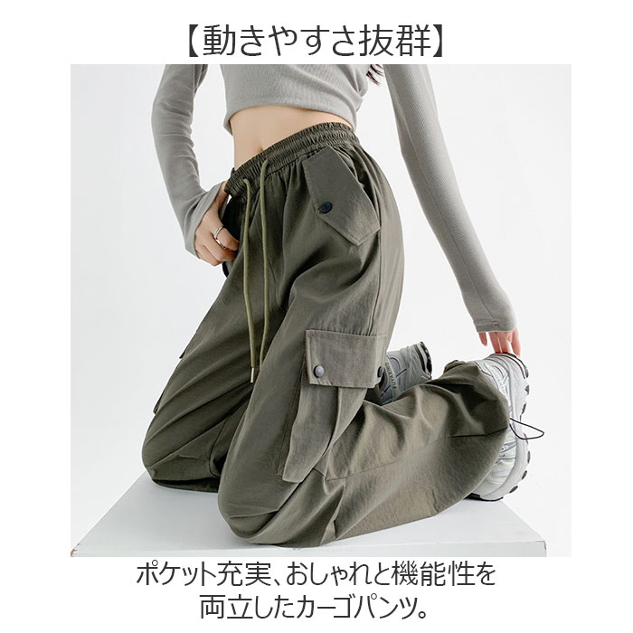レディース ボトムス 通販 パンツ カーゴパンツ ズボン おしゃれ ゆったり ウエストゴム 春秋 ストリート 体型カバー カジュアル ロングパンツ レディース