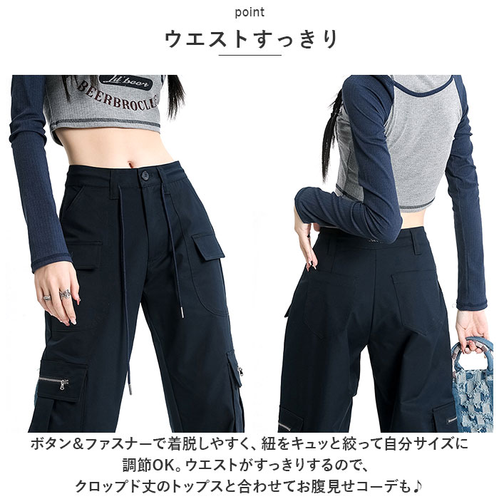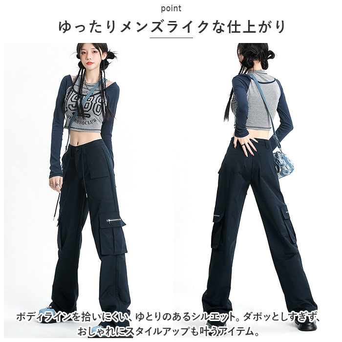 カーゴパンツ レディース ゆったり 通販 ワイドパンツ 長ズボン ズボン 作業着 ワイド ルーズ 太め ポケット ボトムス 10分丈 シンプル 無地 楽 カーゴパンツ