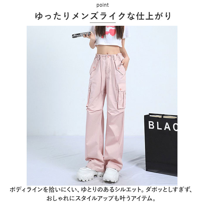 カーゴパンツ レディース ゆったり 通販 ワイドパンツ 長ズボン ズボン 作業着 ワイド ルーズ 太め ポケット ボトムス 10分丈 シンプル 無地 楽 カーゴパンツ