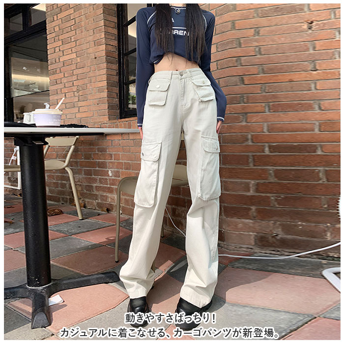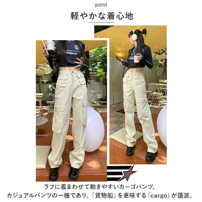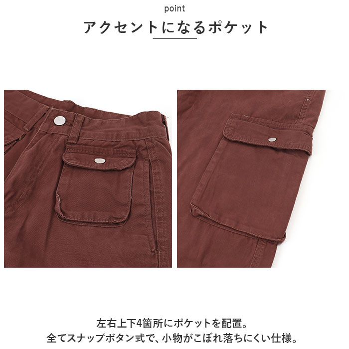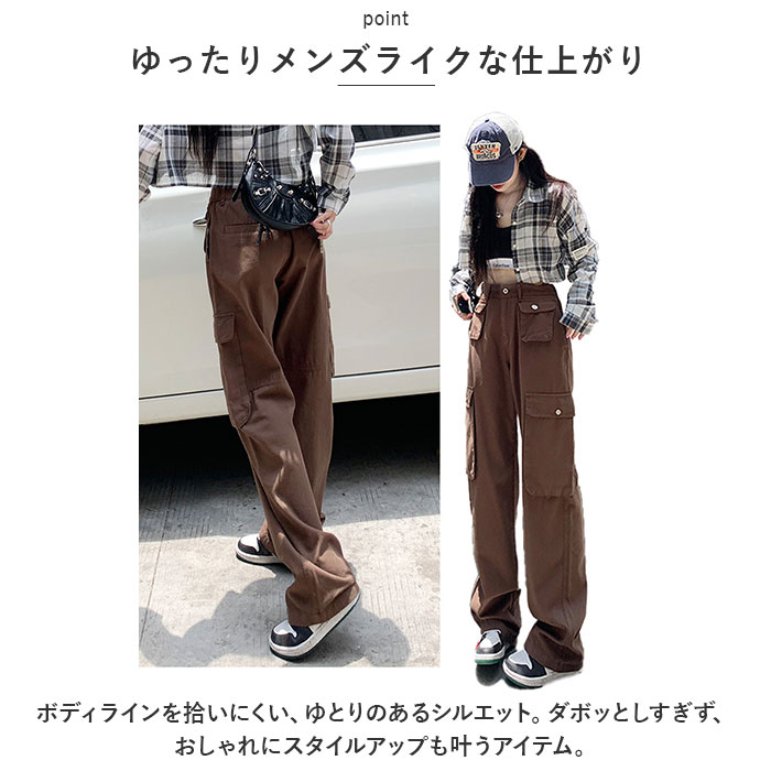 カーゴパンツ レディース ゆったり 通販 ワイドパンツ 長ズボン ズボン 作業着 ワイド ルーズ 太め ポケット ボトムス 10分丈 シンプル 無地 楽 カーゴパンツ
