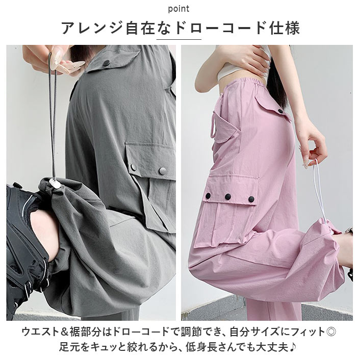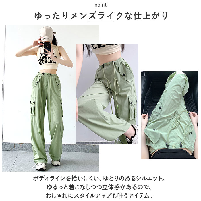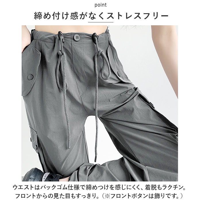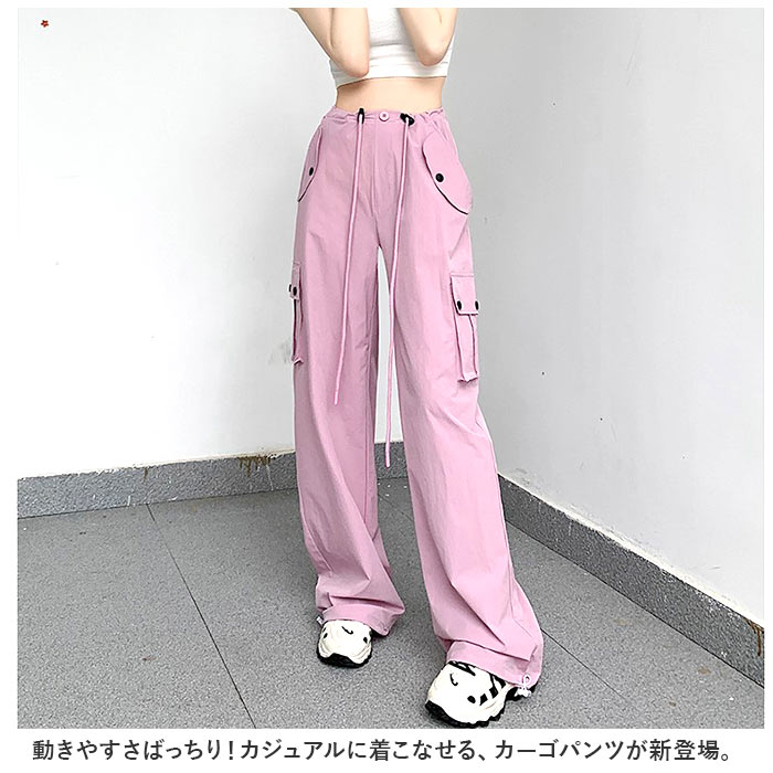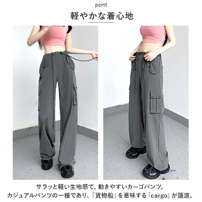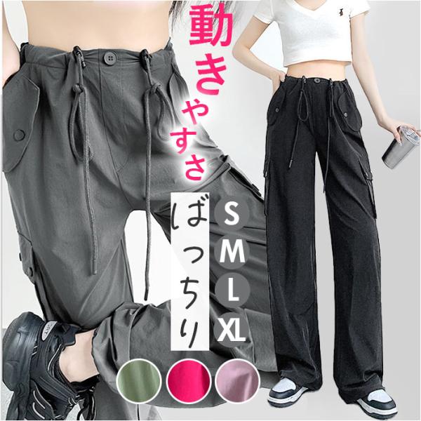 カーゴパンツ レディース ゆったり 通販 ワイドパンツ 長ズボン ズボン 作業着 ワイド ルーズ 太め ポケット ボトムス 10分丈 シンプル 無地 楽 カーゴパンツ