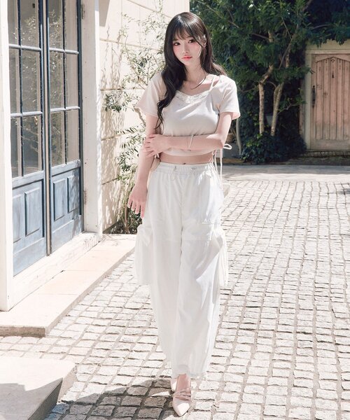 カーゴパンツ サイドレースリボンカーゴパンツ レディース