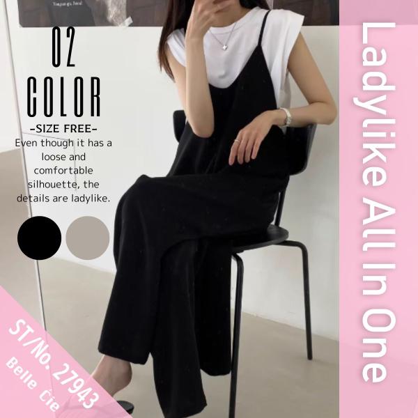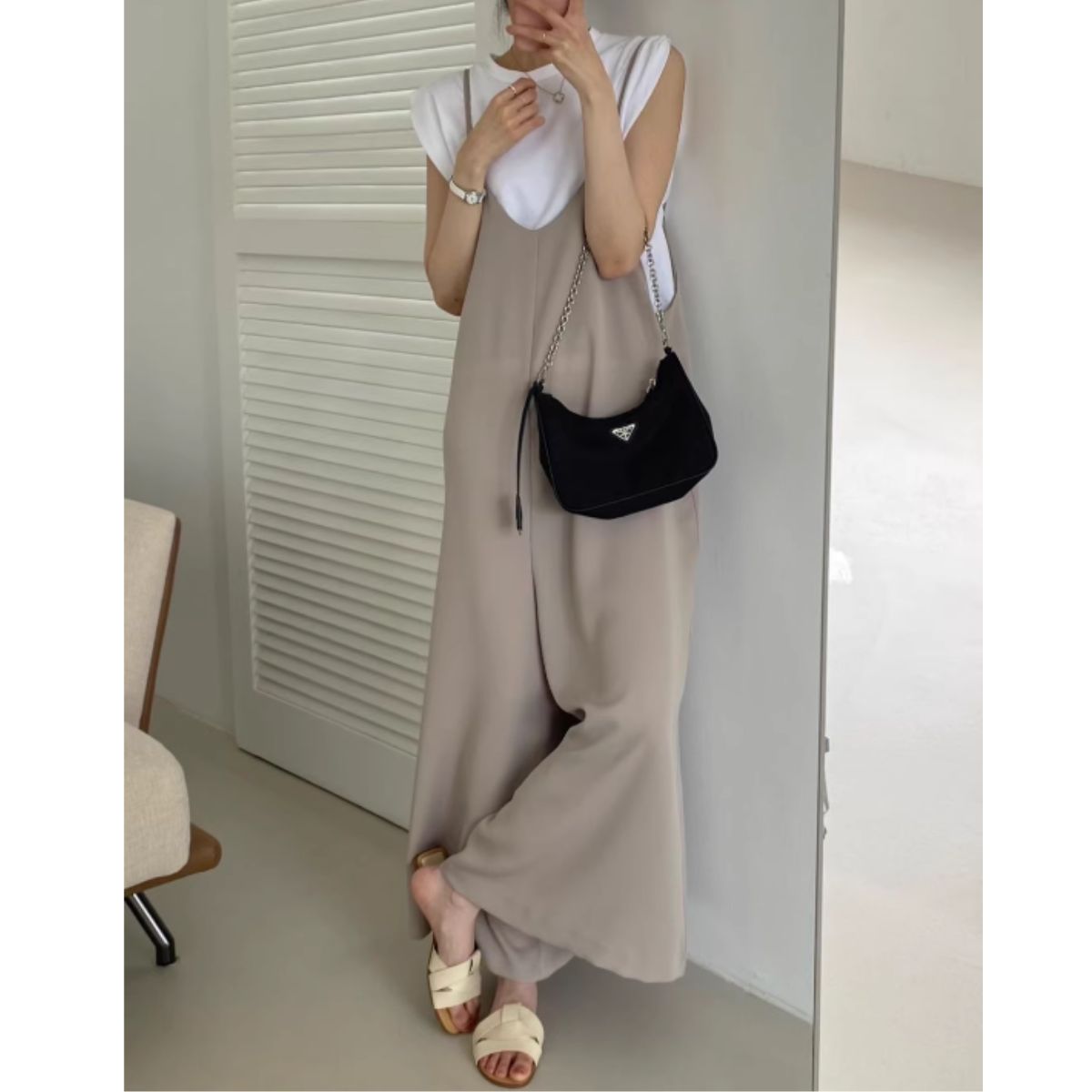 サロペット ワンピース オールインワン ワイドパンツ つなぎ レディース 大人 ゆったり コンビネゾン 着痩せ 無地 体型カバー シンプル きれいめ