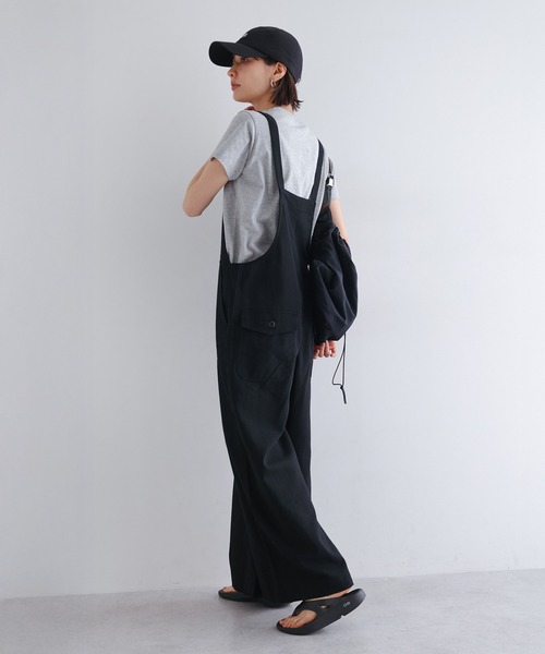 サロペット オーバーオール 「8色/3サイズ展開」リネン混ワイドベイカーサロペット レディース
