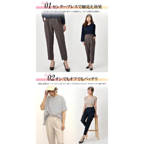 テーパードパンツ レディース パンツ きれいめ 大きいサイズ ウエストゴム 細身 体型カバー 楽ちん 低身長 秋 秋物 タックパンツ イージー フォーマル