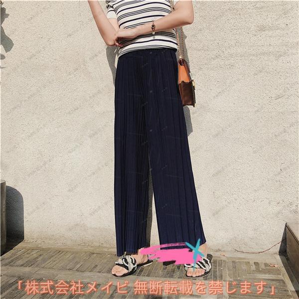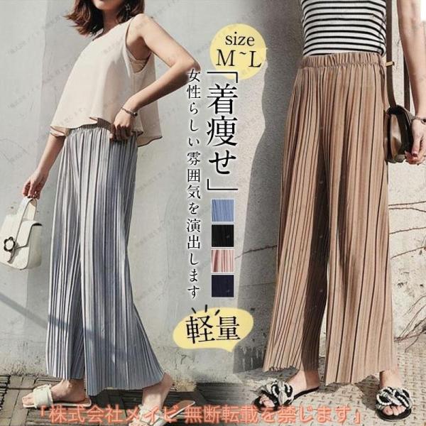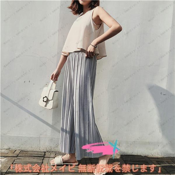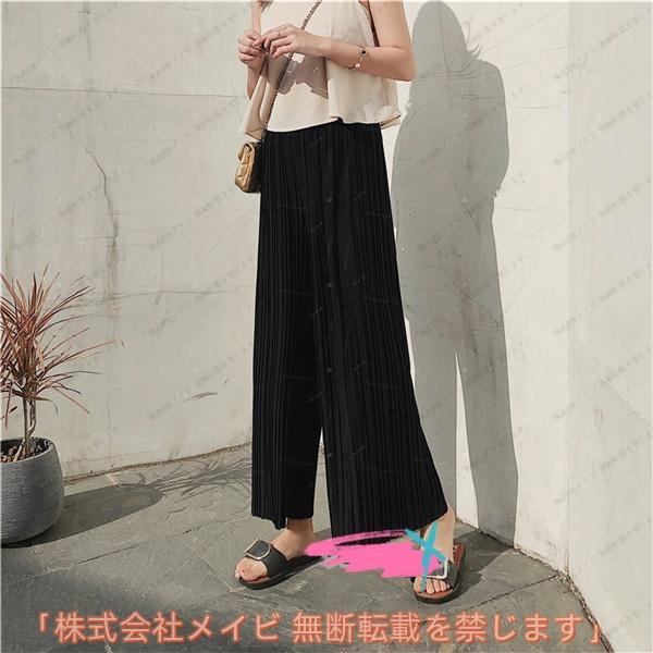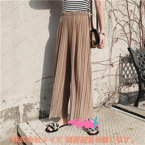 ガウチョパンツレディース ワイドパンツ プリーツパンツ ウェストゴム ロング丈 春夏 無地 ゆったり かわいい きれいめ おしゃれ