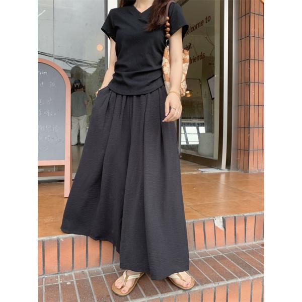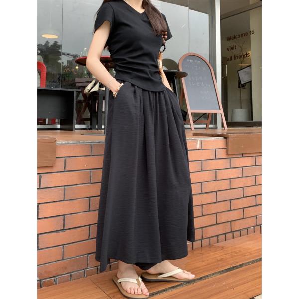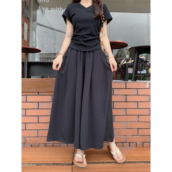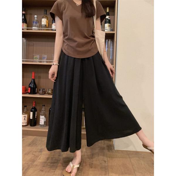 ガウチョパンツ レディース 夏 春秋 ボトムズ パンツ ズボン フレアパンツ ワイドパンツ ウエストゴム ハイウエストパンツ 履きやすい 楽チン 無地 aラインパン