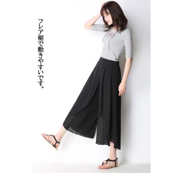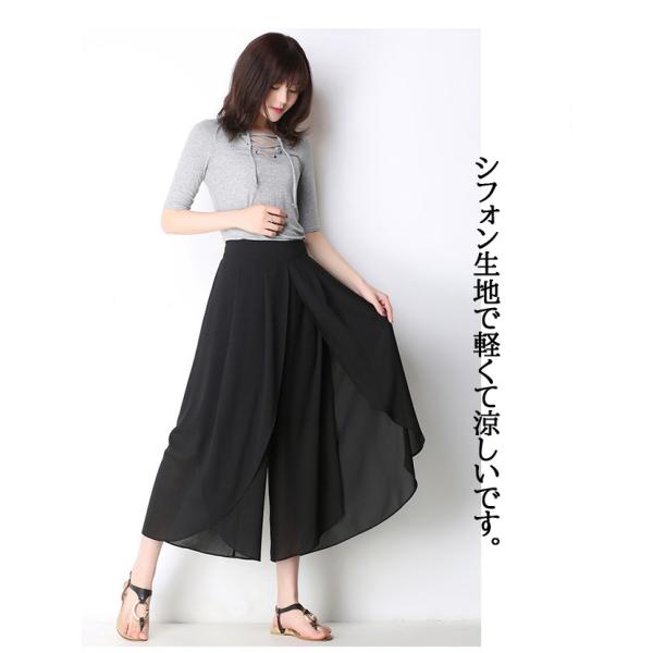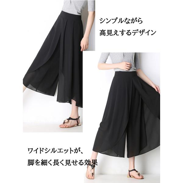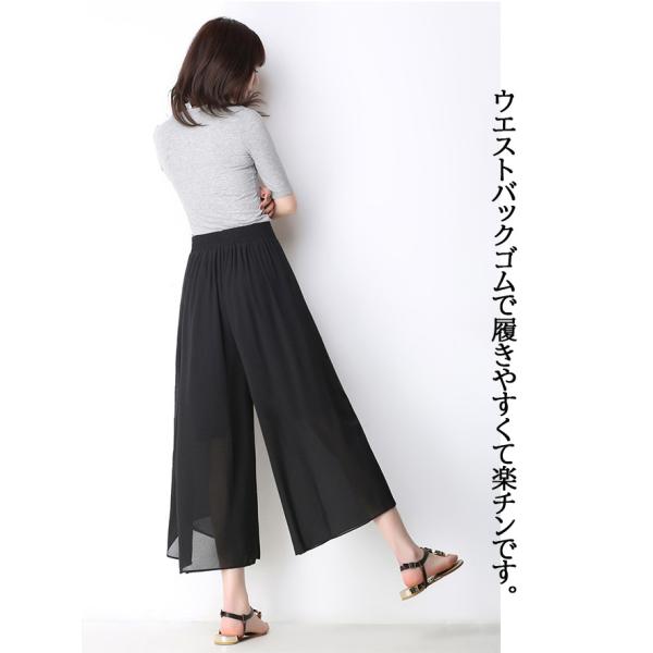 ワイドパンツ シフォンパンツ レディース 夏服 クロップドパンツ ウエストバックゴム 履きやすい 楽チン ガウチョパンツ フレア 黒 涼感 シワにくい 透け感