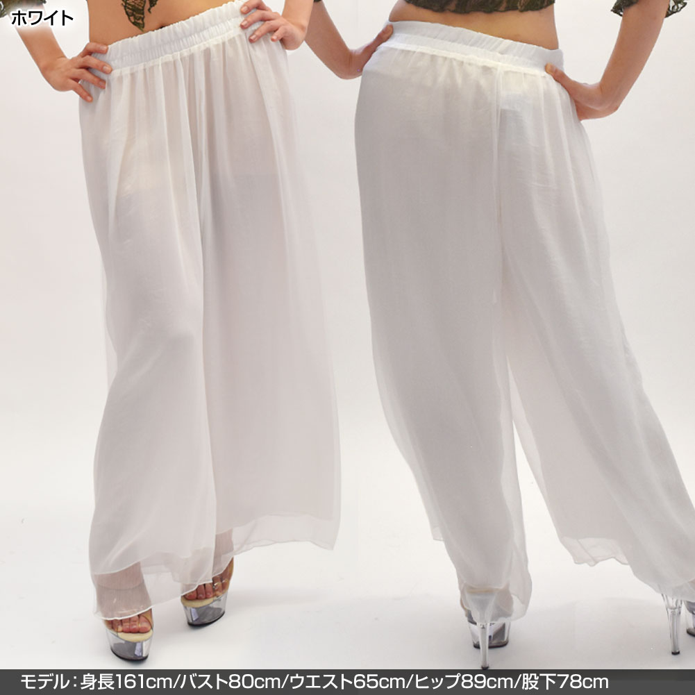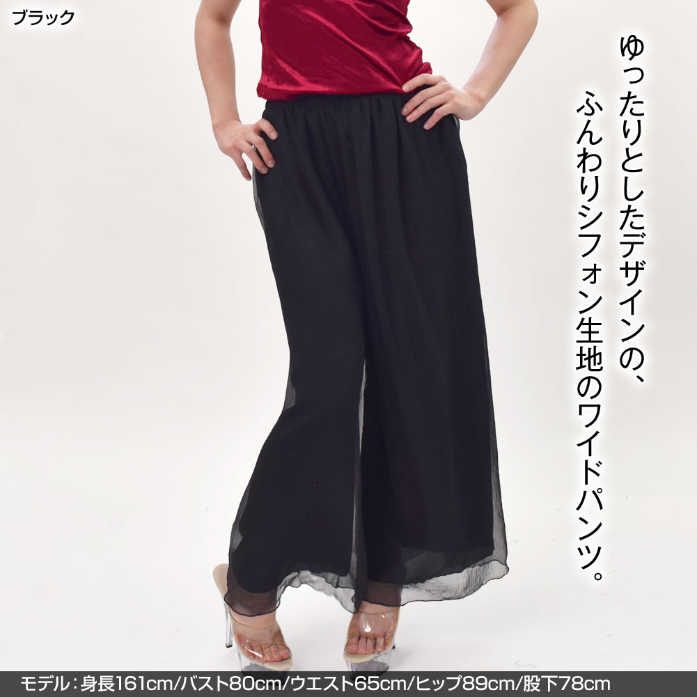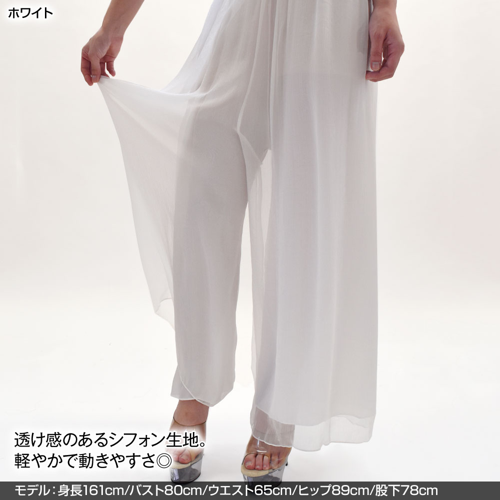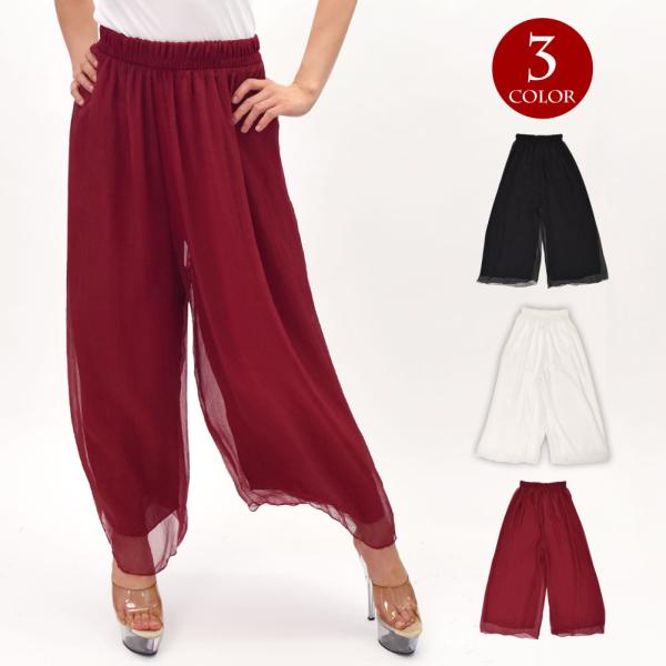 ダンスパンツ シフォンパンツ ワイドパンツ スカンツ ロングパンツ 透け感 ひらひら ゆったり シンプル ナチュラル 涼しい 大人 可愛い [M便 2/3]