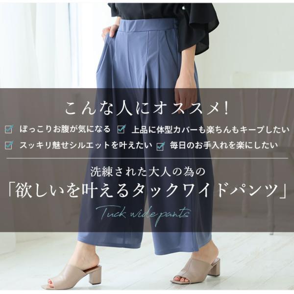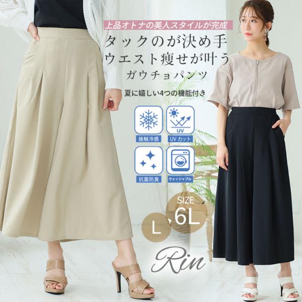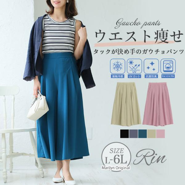 大きいサイズ レディース パンツ Rin 夏のお悩みを凛とカバー 4つの機能付 ウエストタックでお腹スッキリ 足首みせで着痩せ効果 ガウチョパンツ オリジナル A