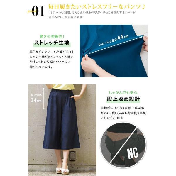 ガウチョパンツ スカーチョ レディース 無地 春夏 柄 ストレッチ ストライプ