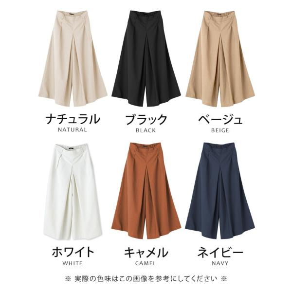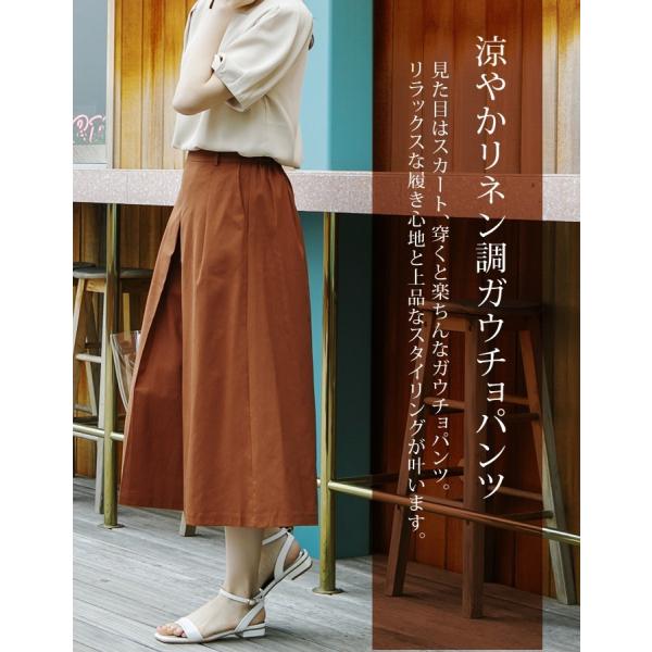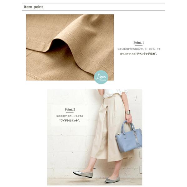ガウチョパンツ スカンツ リネンタッチ レディース タック入り 涼しい 無地 麻 ウエストゴム 大きいサイズ 春夏≪ゆうメール便配送30・代引不可≫