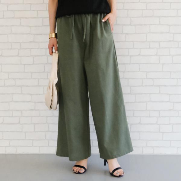 リネンタッチワイドパンツ レディース 春 夏 秋 M カジュアル シンプル ≪ゆうメール便配送30・代引不可≫