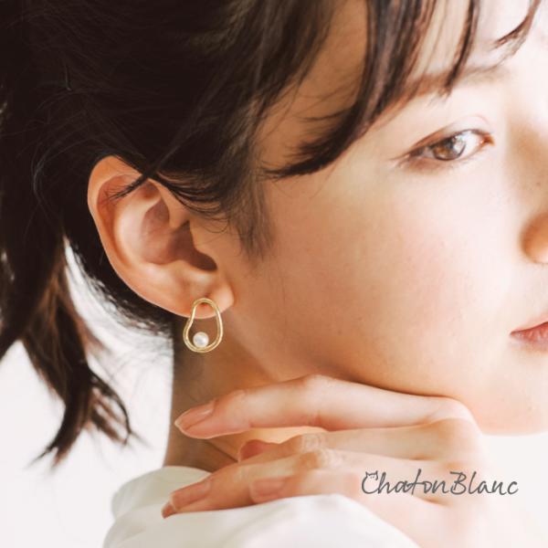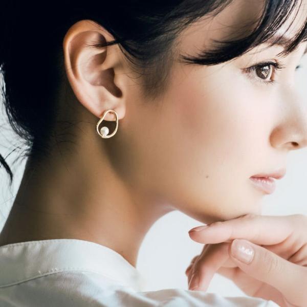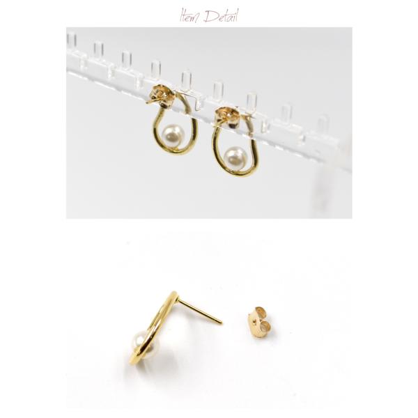 パール付き変形サークルピアス レディース ゴールド ≪ゆうメール便配送30・代引不可≫